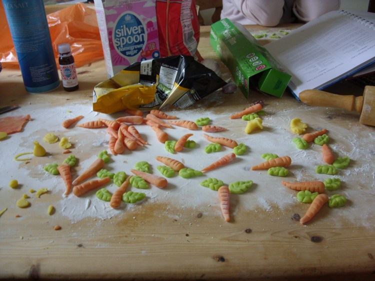 1. I would like to make it very very clear that it was not me who made the marzipan carrots, but my friend Georgia. In fact I only made the lines in the carrots, and as she says ‘there would be no lines if there were no carrots. (And before there are any more arguments, my friend Erin is responsible for making the leaves).