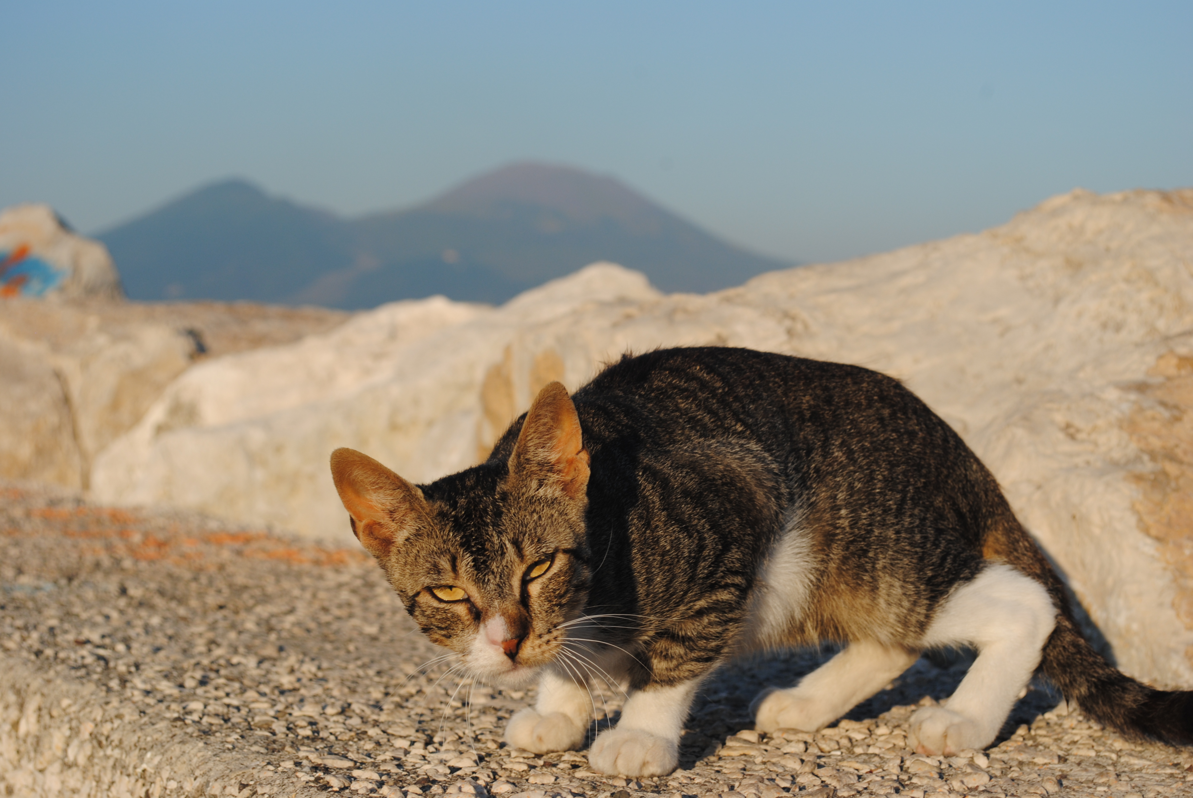 Ahhh…the sea, the volcano and a cat for company, now this is the life! Upon hopping off the bus I instantly set eyes on Vesuvius and I fell in love. People call this the ‘most beautiful bay in the world’ and you know what, I think they may just be right. I love the way the volcano sits so gracefully, watching over the city like a mother might watch a child, but to know that at any moment it can hit out and with one deadly blow destroy this beautiful city. However, at that moment there was calm, and I embraced it. I sat with my new cat friend and watched the volcano. I then searched out the perfect restaurant with a Vesuvius view and sat, for sadly too long, eating my gnocchi and gazing lovingly. For as the sun set and I finally headed off in the direction of the bus stop, I found that I had missed the last bus. Oh dear. A five mile walk back to the hotel, through Naples, in the dark, all alone and wearing flimsy and uncomfortable sandals – my mother would not be best impressed.
