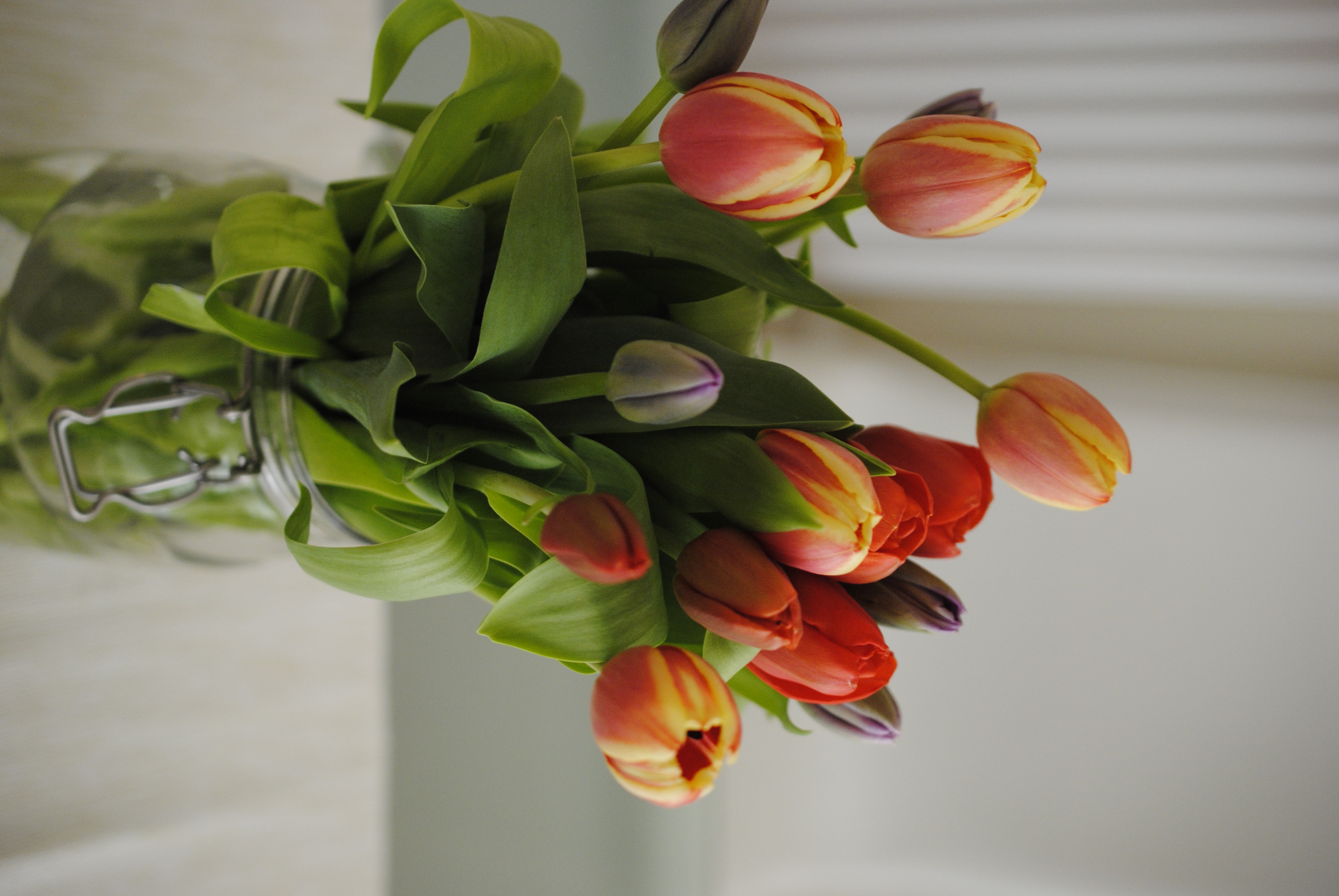 And at the centre of this contentment is a table. A table with tulips and scattered with kirby grips and pens, where I spent two hours on Sunday morning listening to jazz and drinking bucks fizz in my pyjamas.