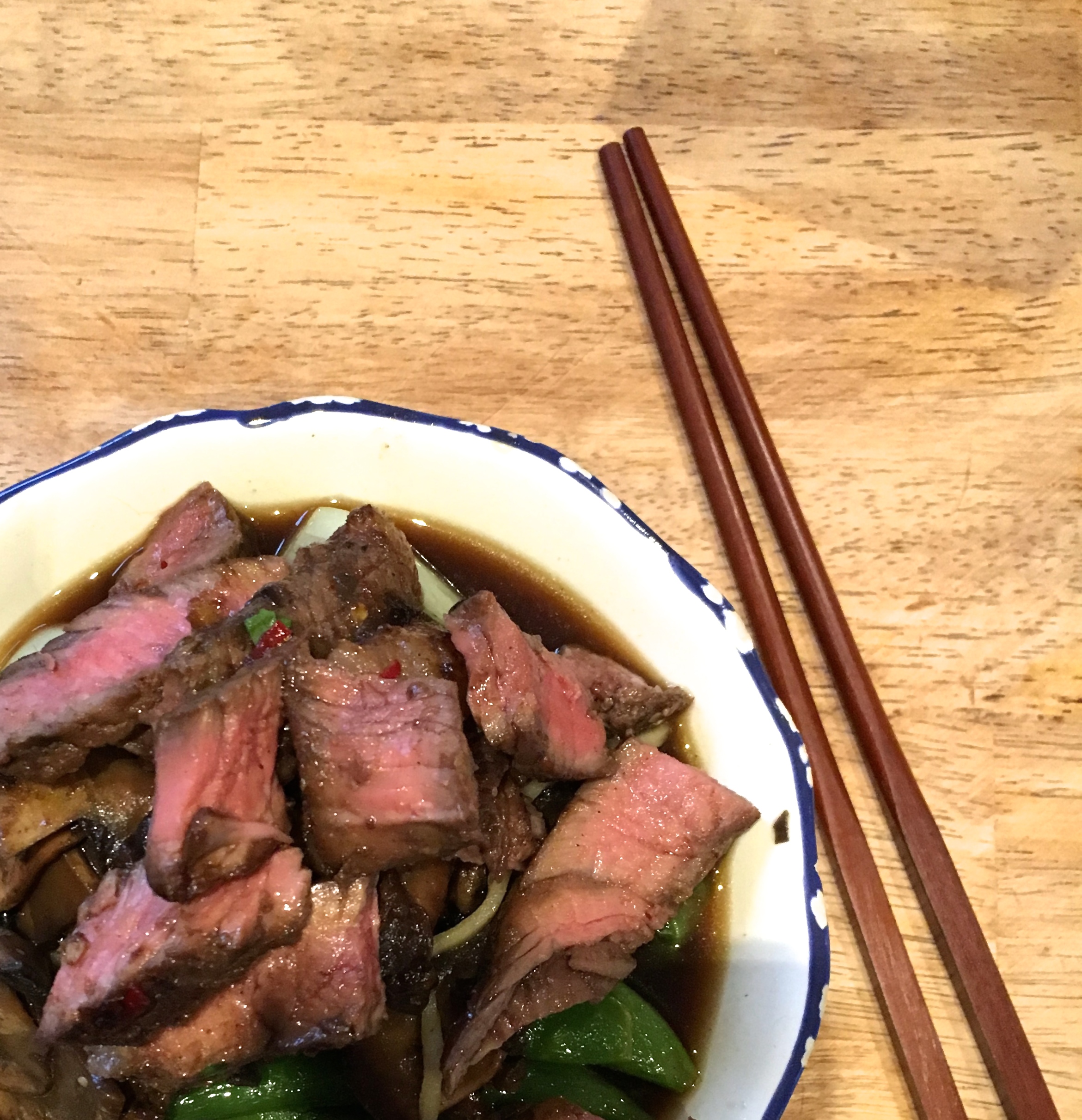The beef noodles were adapted from the Aromatic Chilli Beef Noodle Soup found in Nigella’s How To Eat. I added the some sliced chestnut mushrooms marinaded and fried alongside the steak.
