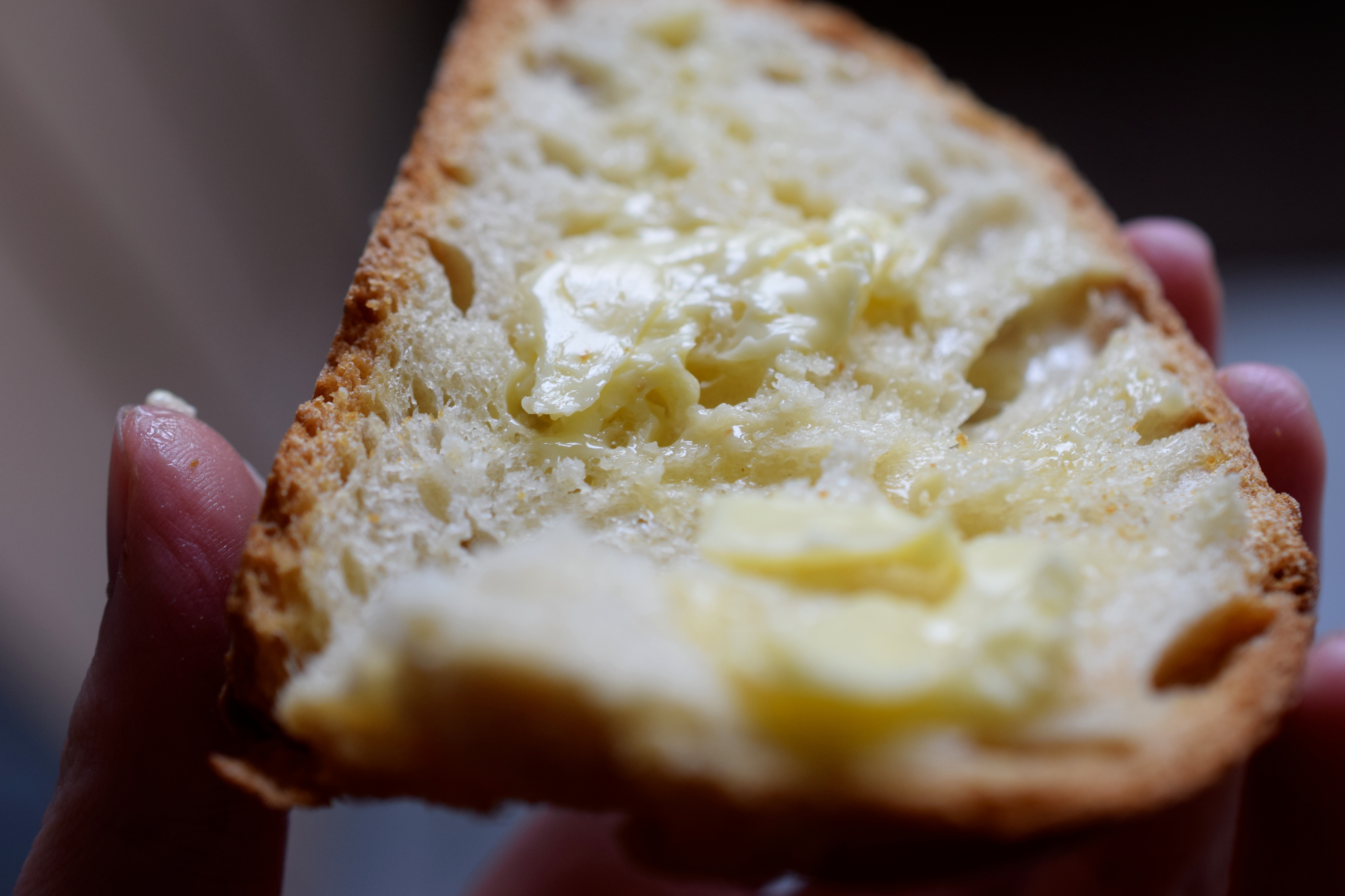 The recipe comes courtesy of the late Laurie Colwin and it is, without a doubt, the most forgiving loaf you’ll ever make. She instructs you to put the dough in a warm place and forget about it. Entirely. Go to work, watch a film, arse around on the internet. Just erase the memory of bread making from your memory. Laurie promises that when you finally remember to pop it in the oven you’ll have the perfect loaf of bread. And of course, she’s entirely correct.